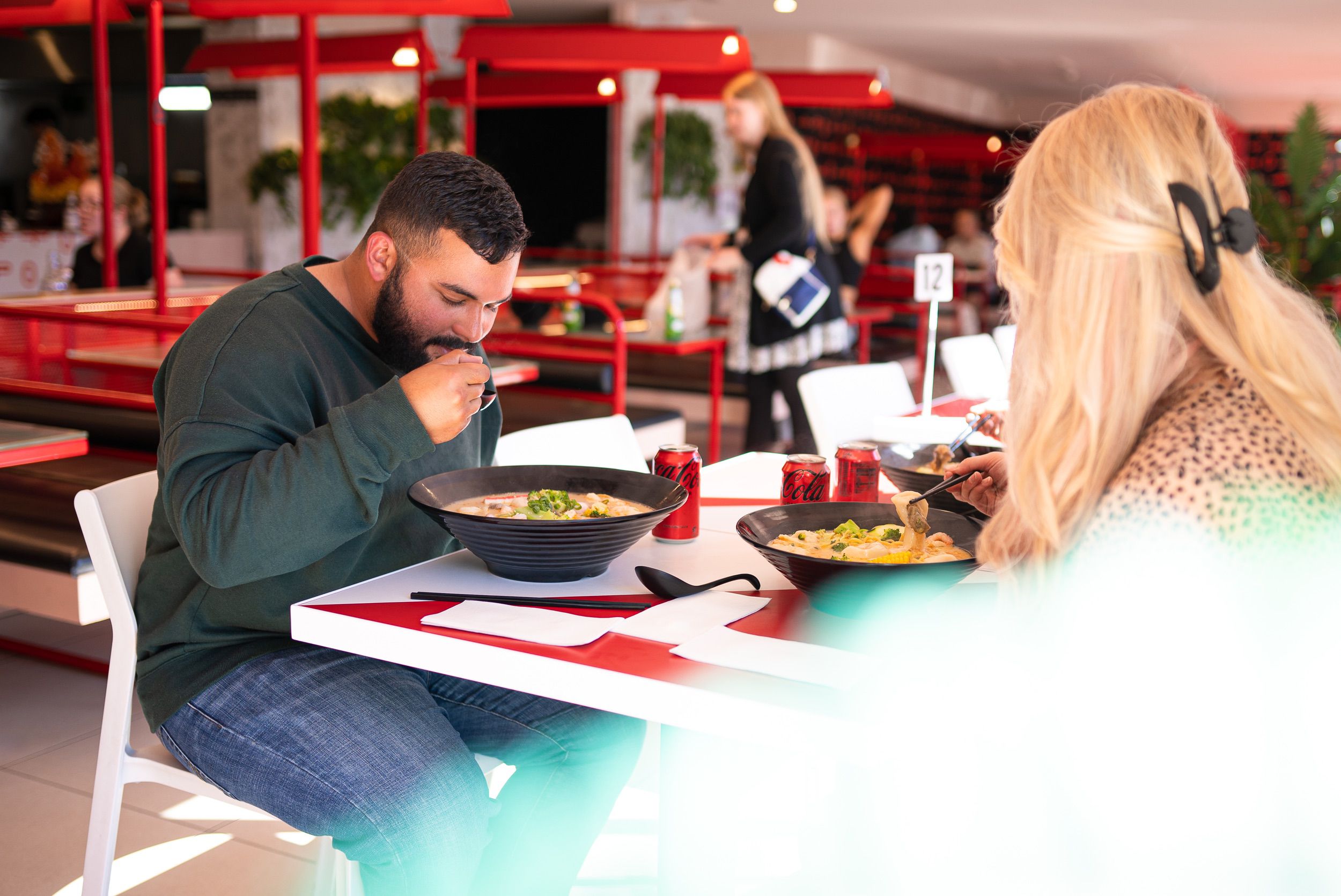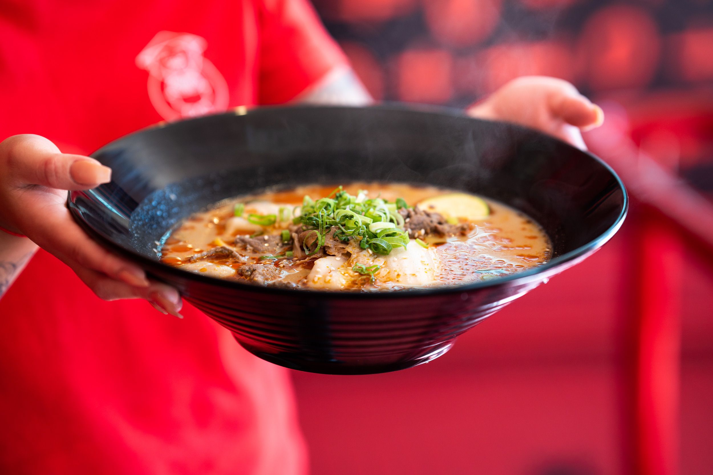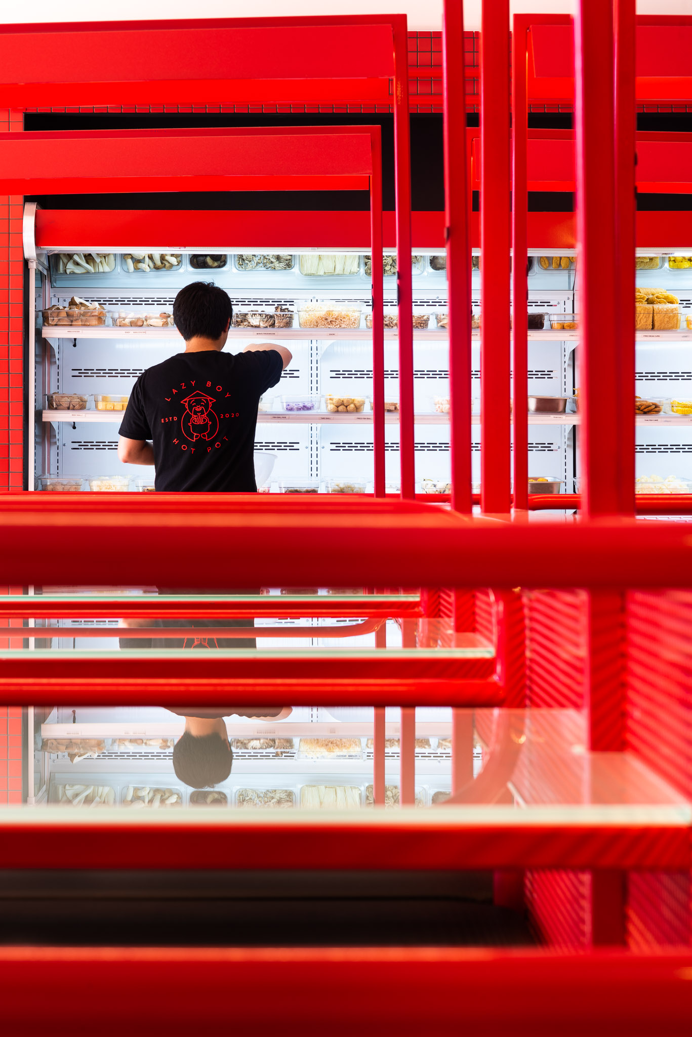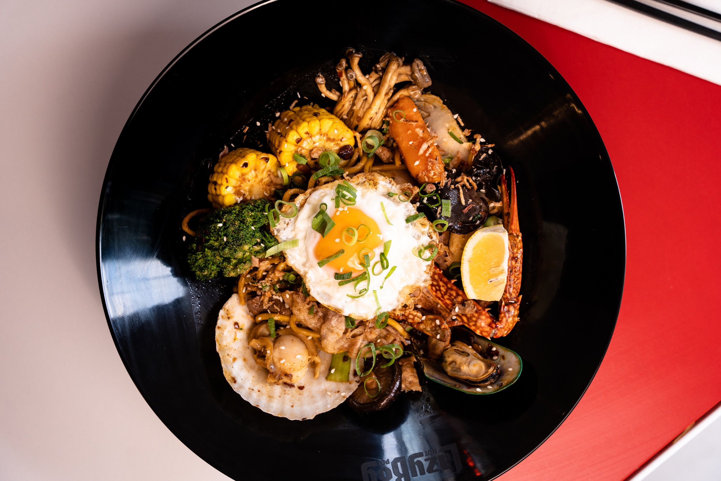 Make your choice between the numbing spice of our signature Malatang broth or the tangy zest of Tom Yum soup, and watch as your dish is expertly cooked to perfection. Beyond our striking red, black, and white interiors, the real magic happens around our tables - filled with laughter, shared stories, and the comforting aroma of hot pot. From hearty oyster mushrooms to zesty fish roe balls and succulent marinated beef, every bite is a new adventure.